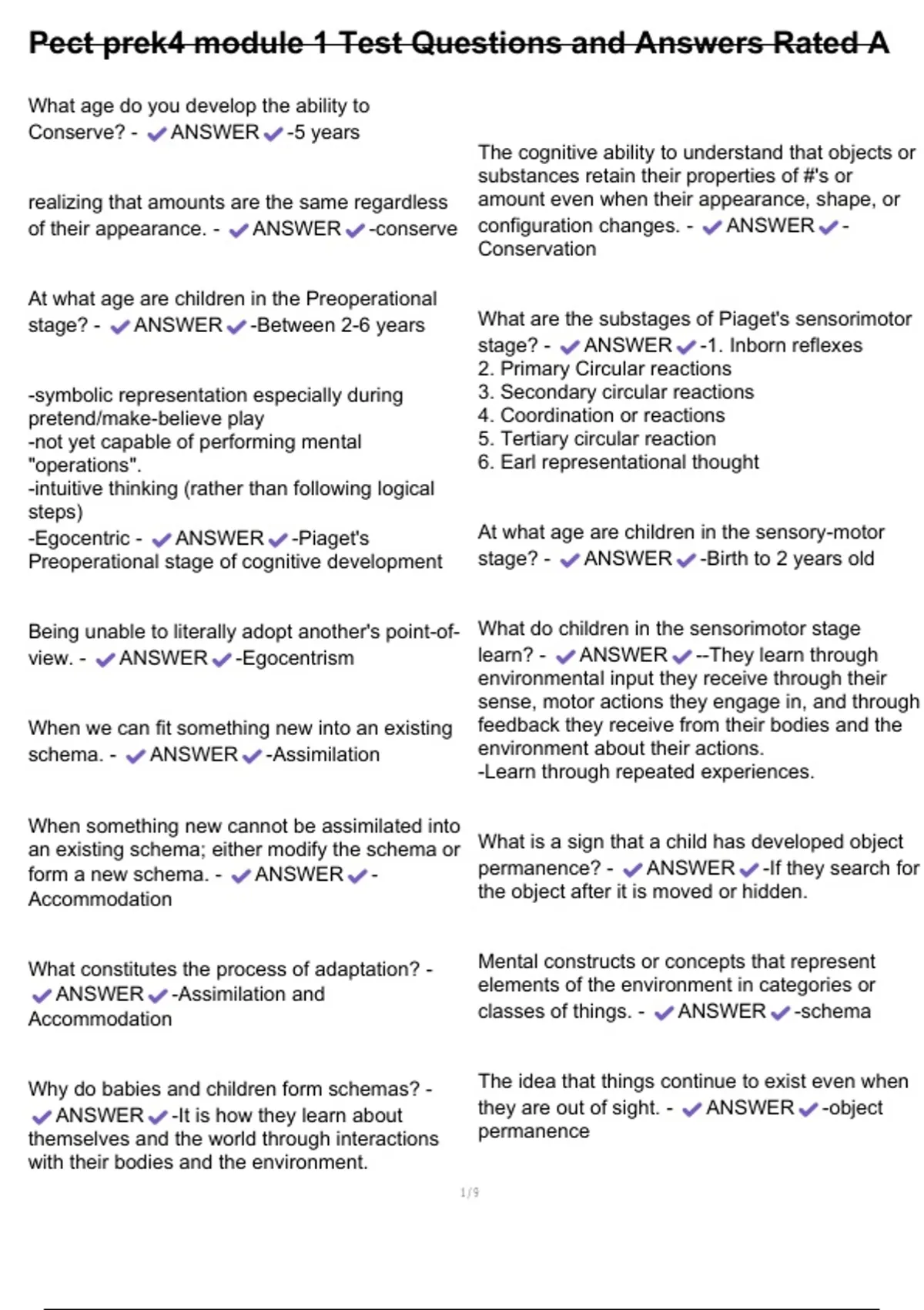 , Pect prek4 module 1 Test Questions and Answers Rated A