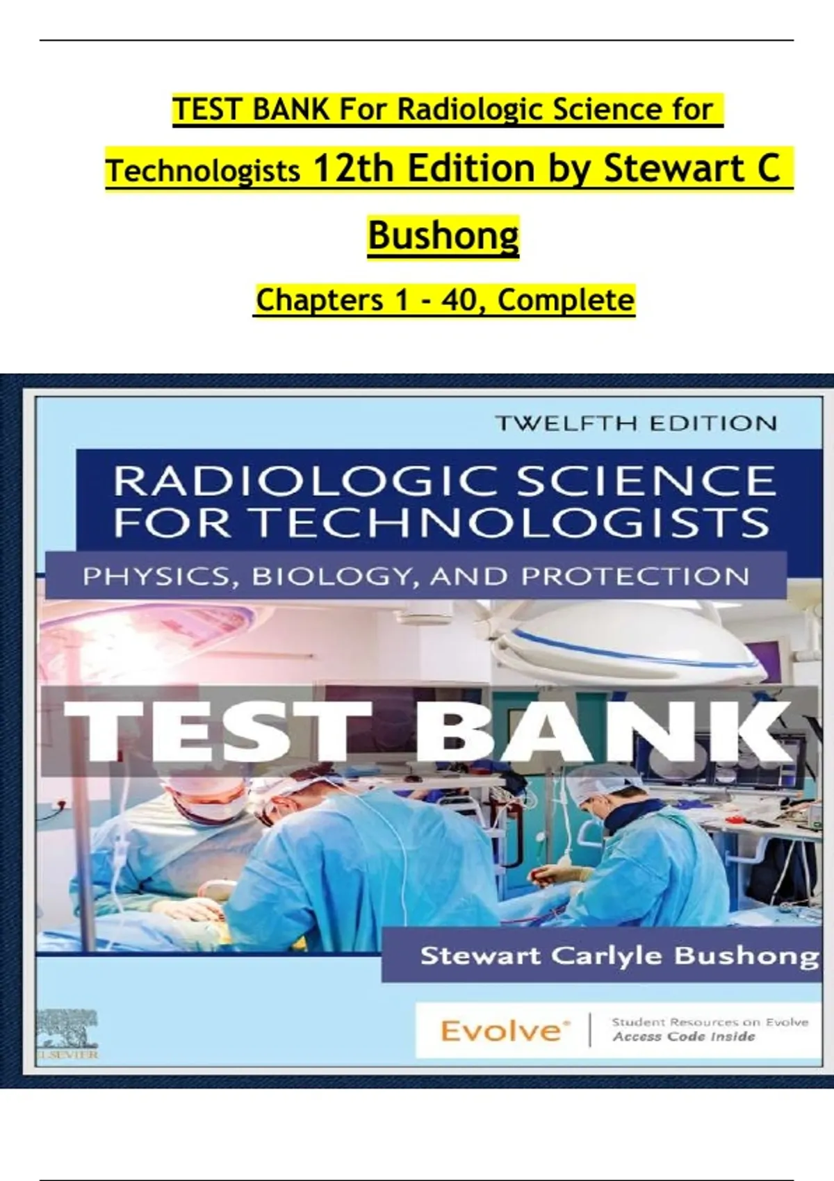 This 2026 updated Test Bank for Radiologic Science for Technologists 12th Edition by Stewart C. Bushong includes all Chapters 1–40, featuring accurate, verified exam-style questions ideal for radiology students preparing for quizzes, exams, and certification review.