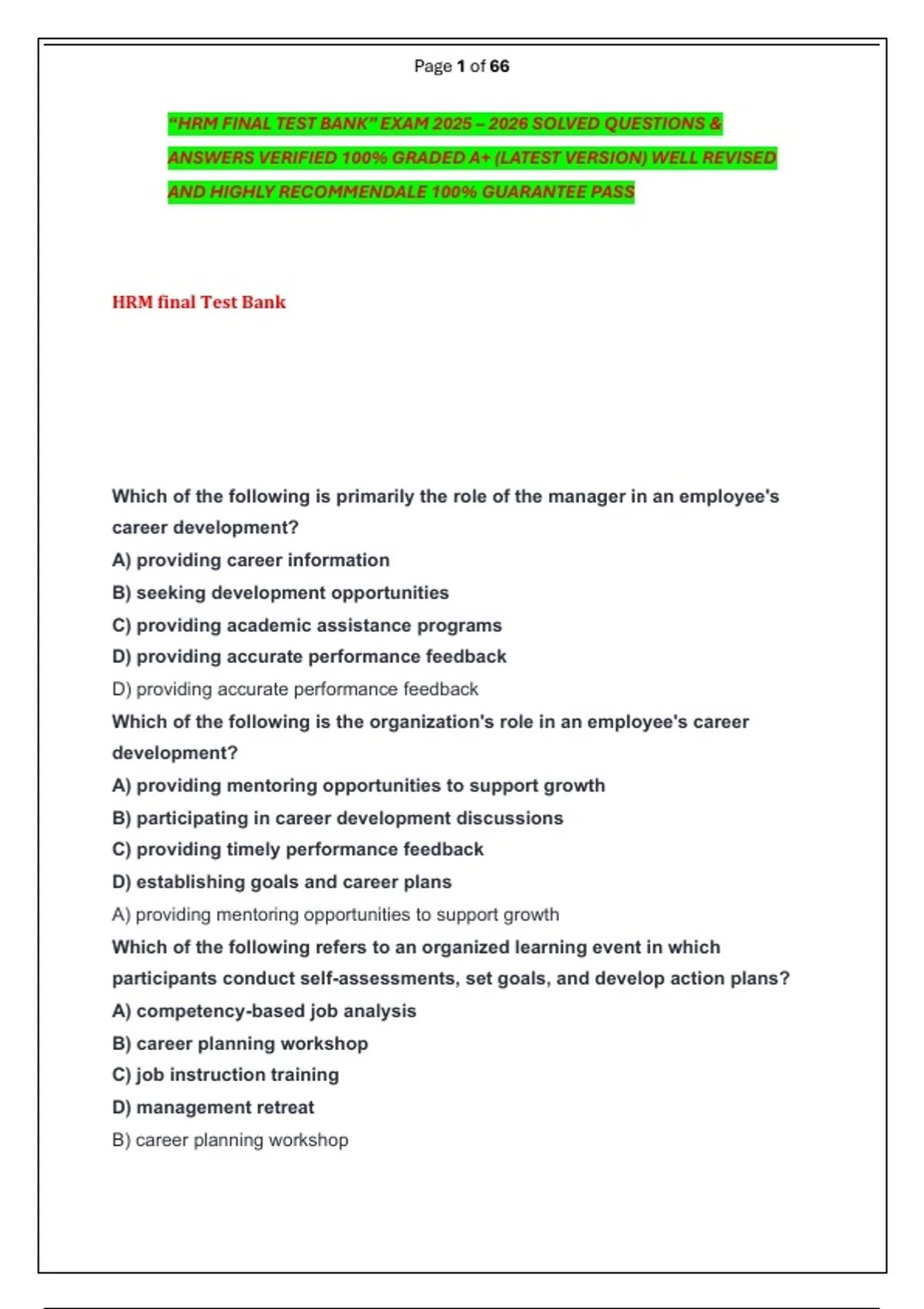 “HRM FINAL TEST BANK” EXAM 2025 – 2026 SOLVED QUESTIONS &