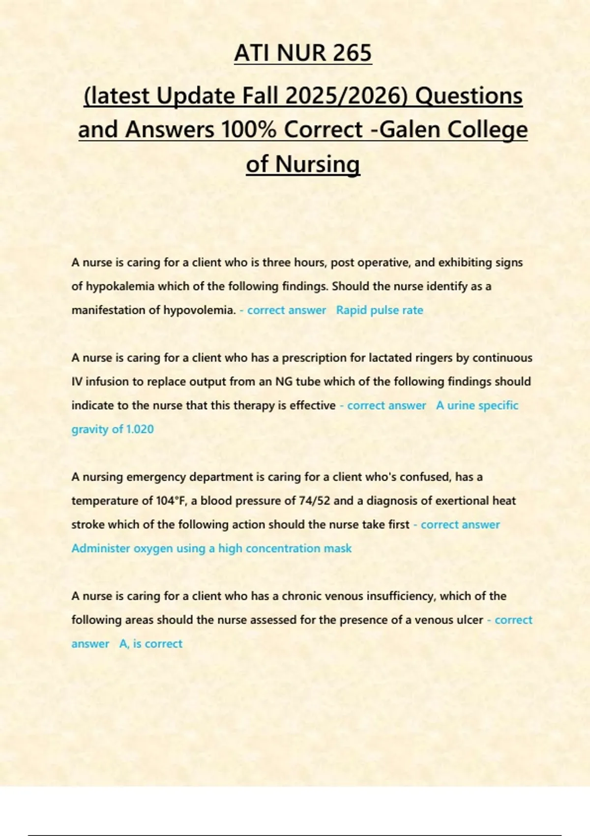 and Answers 100% Correct -Galen College