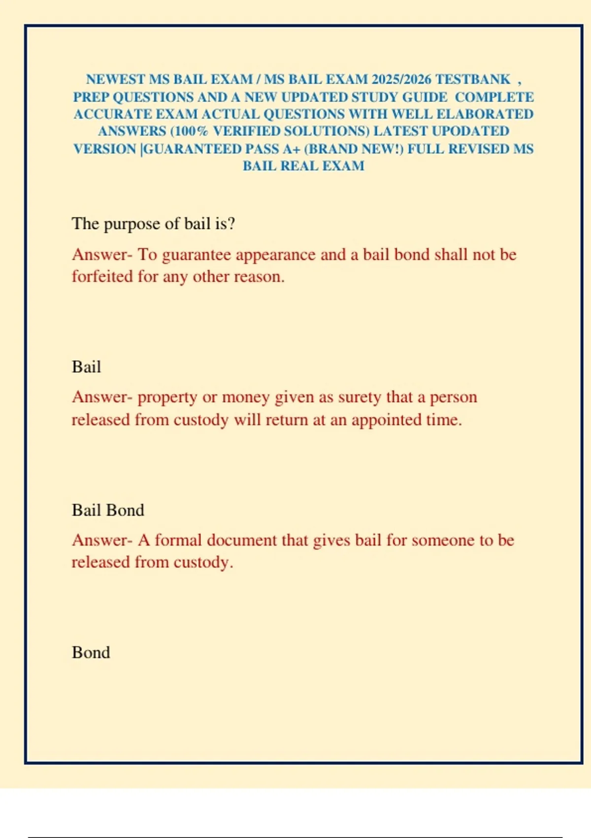 Answer- To guarantee appearance and a bail bond shall not be