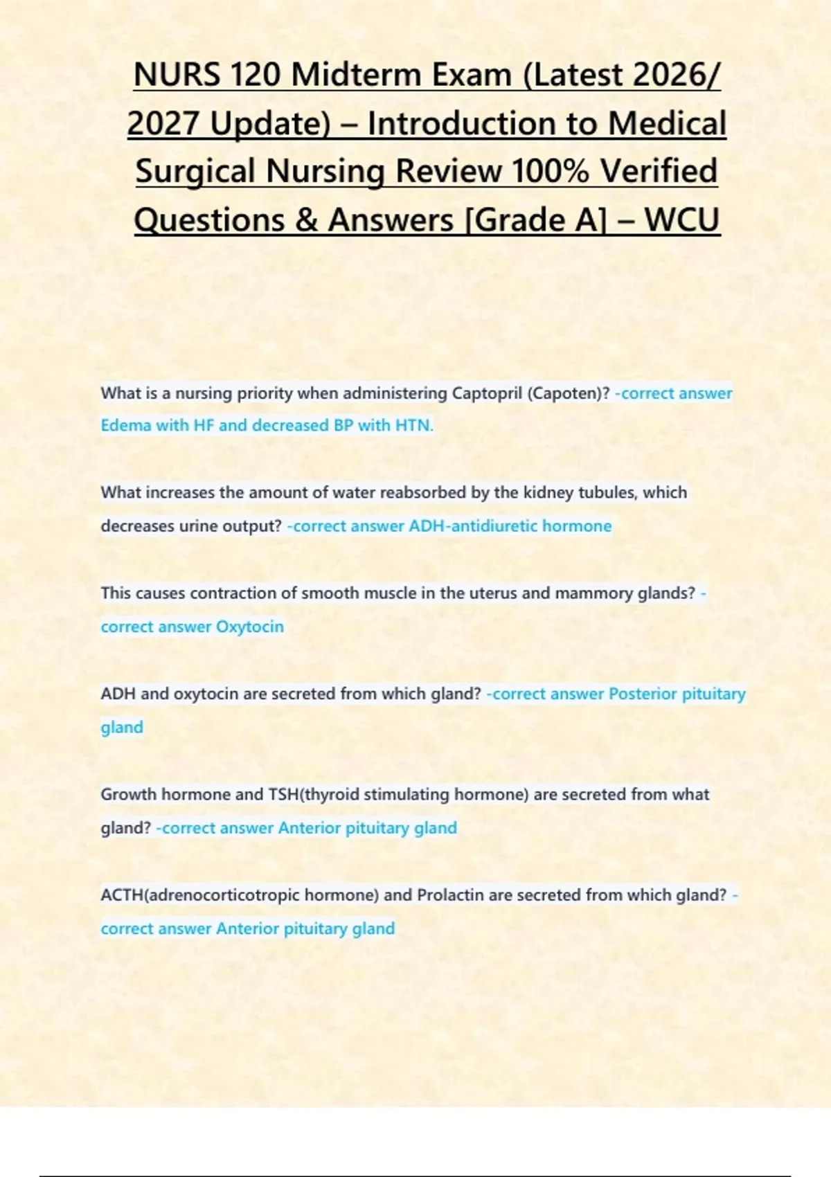 , NURS 120 Midterm Exam (Latest 2026/