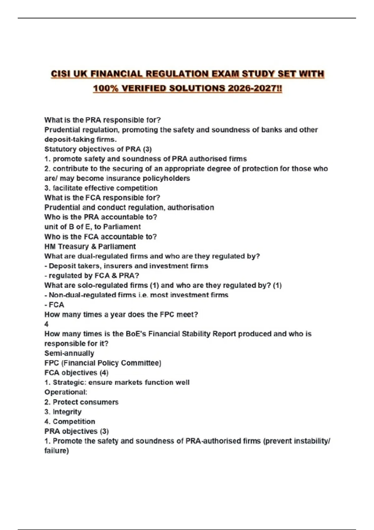 CISI UK FINANCIAL REGULATION EXAM STUDY SET WITH 100% VERIFIED SOLUTIONS !!...