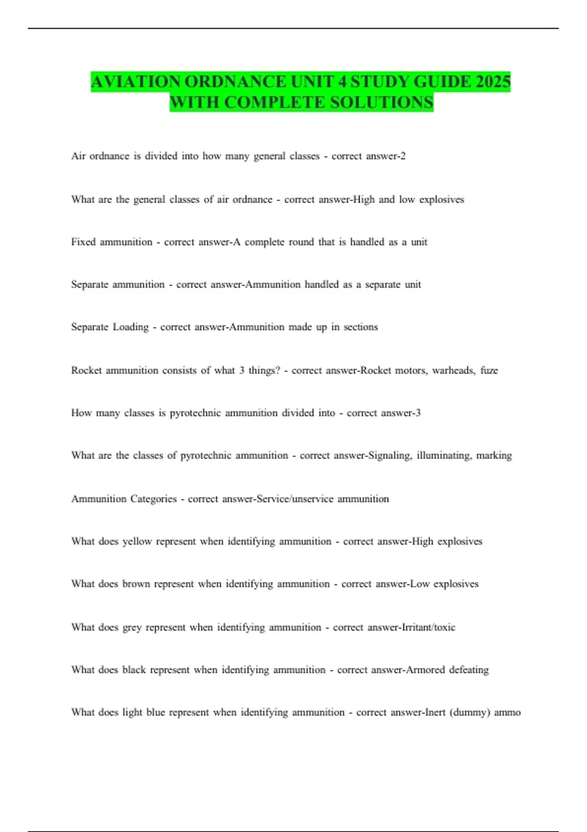AVIATION ORDNANCE UNIT 4 STUDY GUIDE 2025 WITH COMPLETE SOLUTIONS