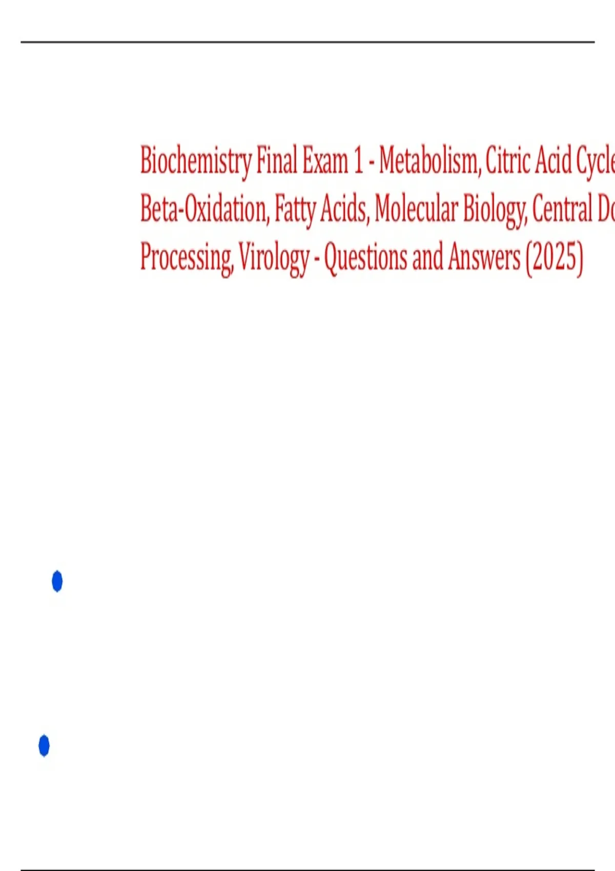Biochemistry Final Exam 1 - Metabolism, Citric Acid Cycle, Gluconeogenesis, Beta-Oxidation, Fatty Acids, Molecular Biology, Central Dogma, mRNA Processing, Virology - Questions and Answers (2025)