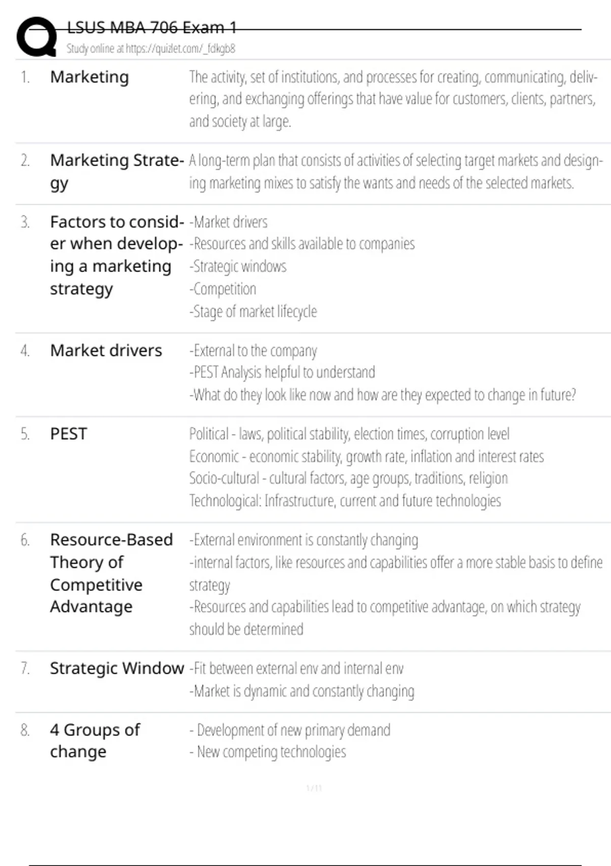 LSUS MBA 706 Exam 1 | 2025 Study | Actual Questions and Answers