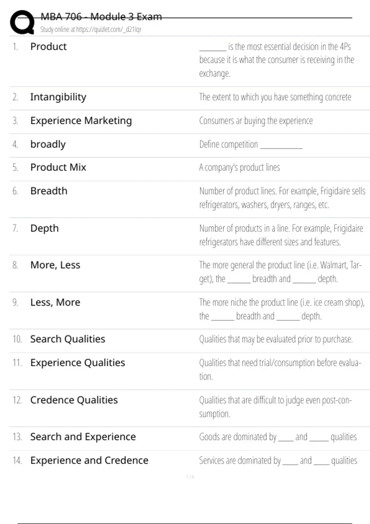 11. Experience Qualities Qualities that need trial/consumption before evalua-