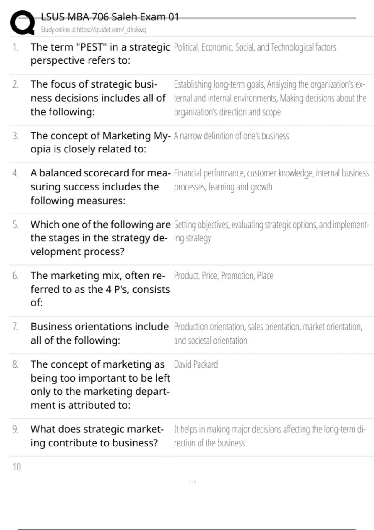 , LSUS MBA 706 Saleh Exam 01