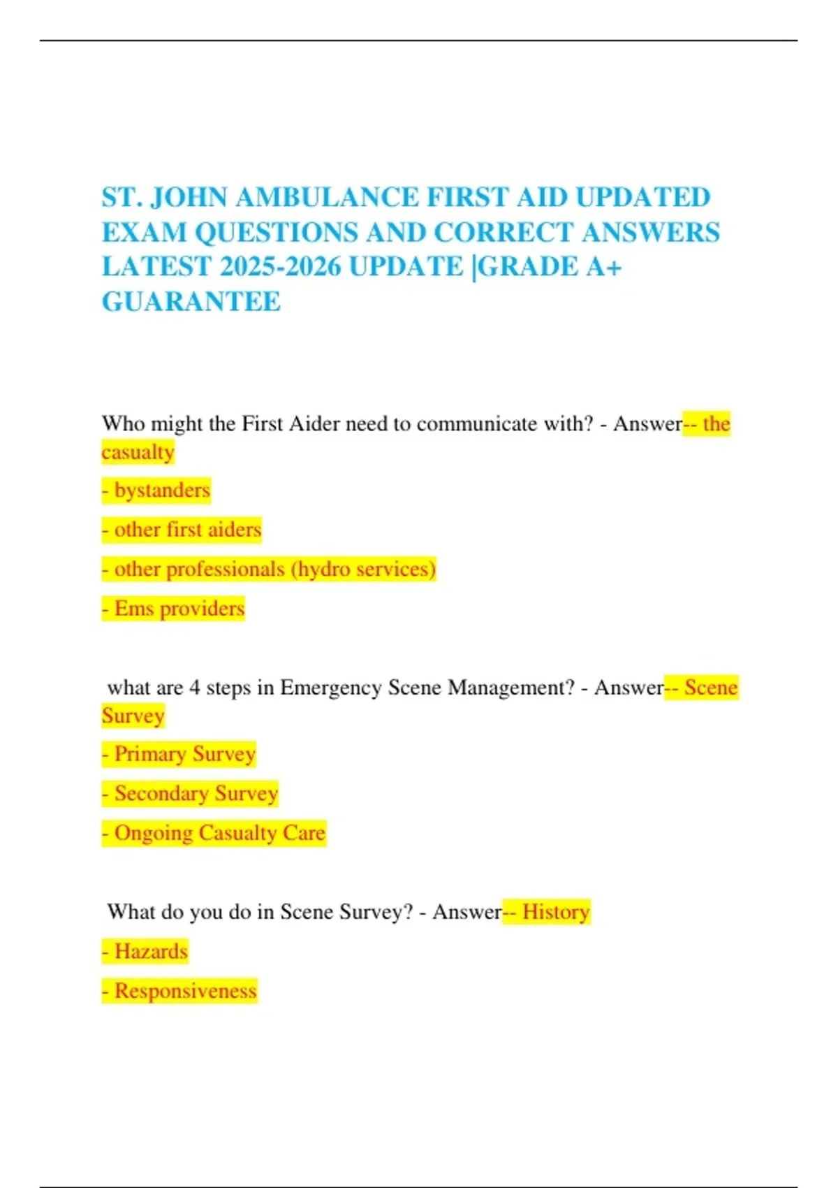EXAM QUESTIONS AND CORRECT ANSWERS