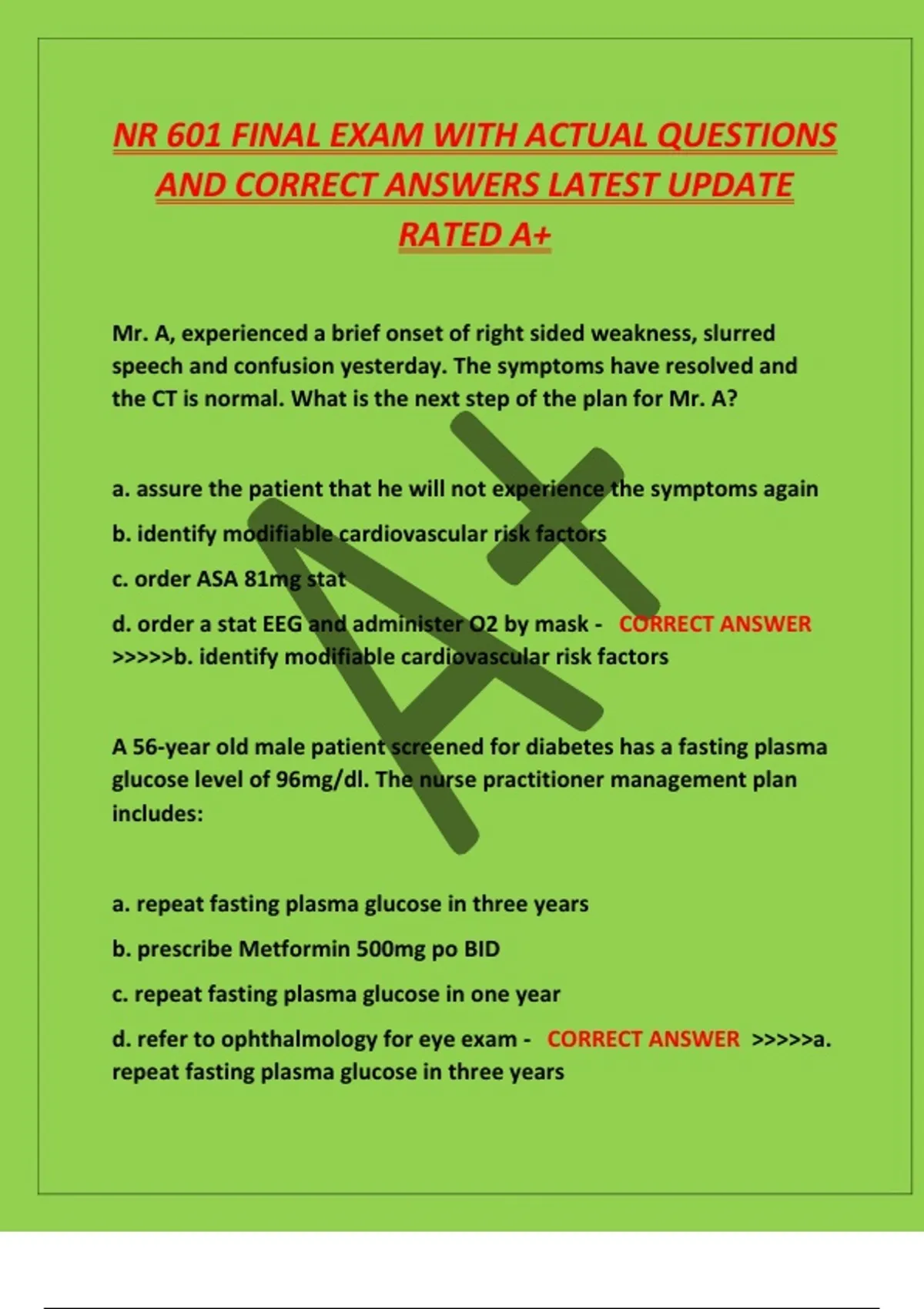 NR 601 FINAL EXAM WITH ACTUAL QUESTIONS