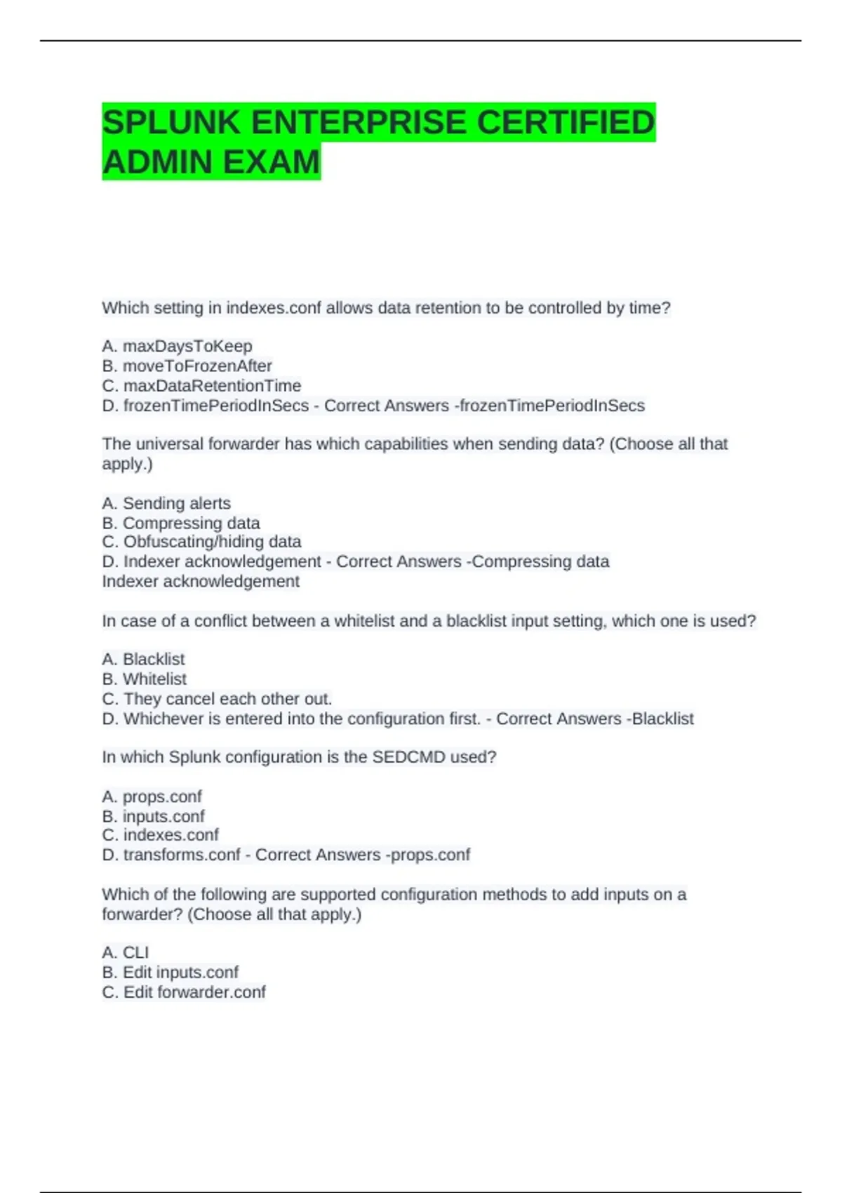 which the configuration was made. - Correct Answers -A list of props.conf configurations