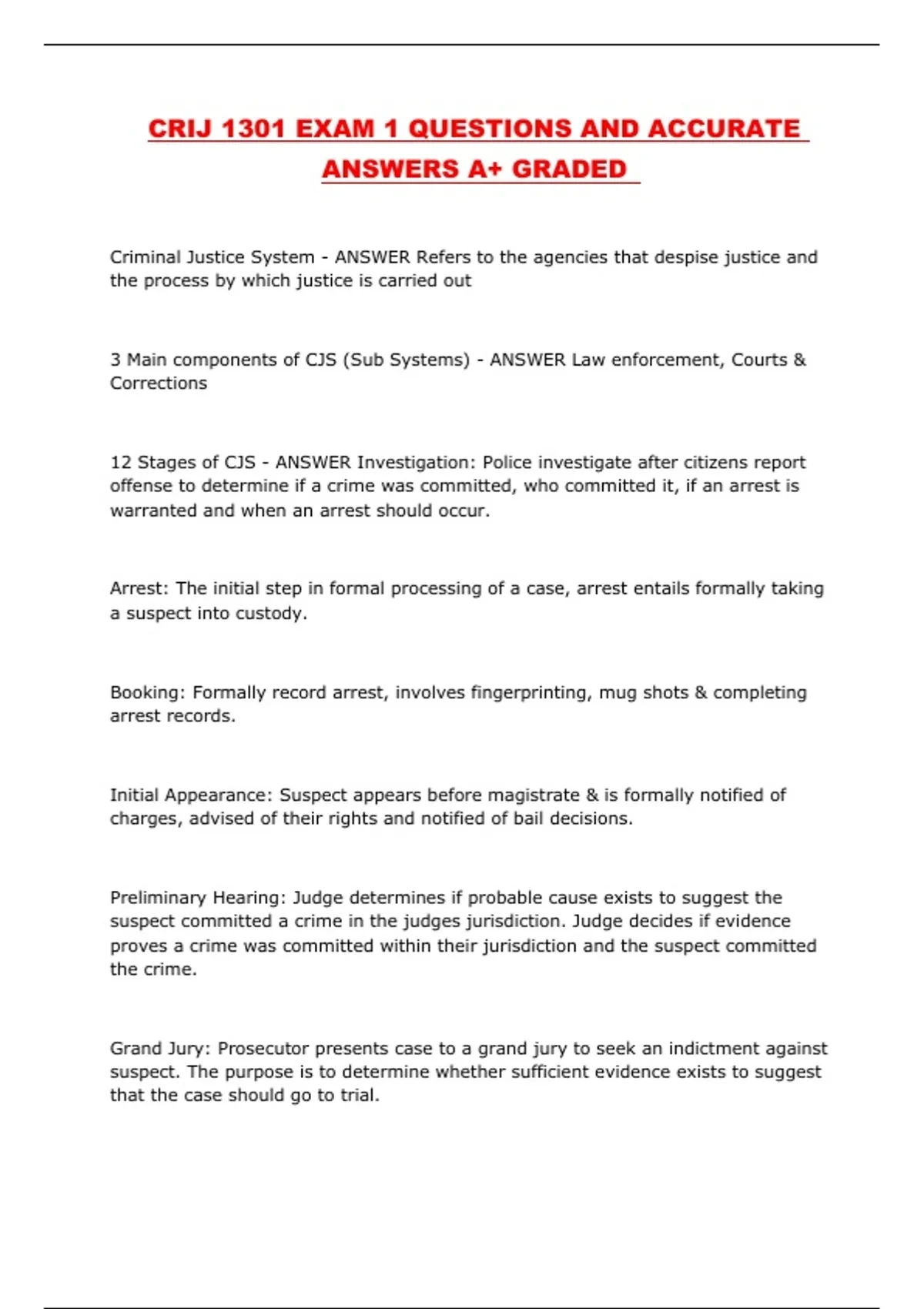 CRIJ 1301 EXAM 1 QUESTIONS AND ACCURATE ANSWERS A+ GRADED ...