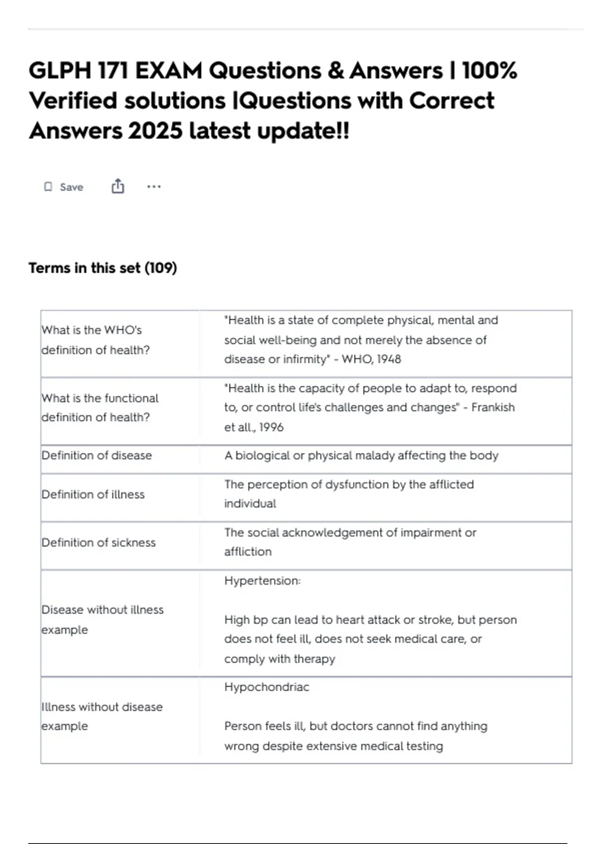 GLPH 171 EXAM Questions & Answers | 100% Verified solutions |Questions with Correct Answers 2025 latest update!!