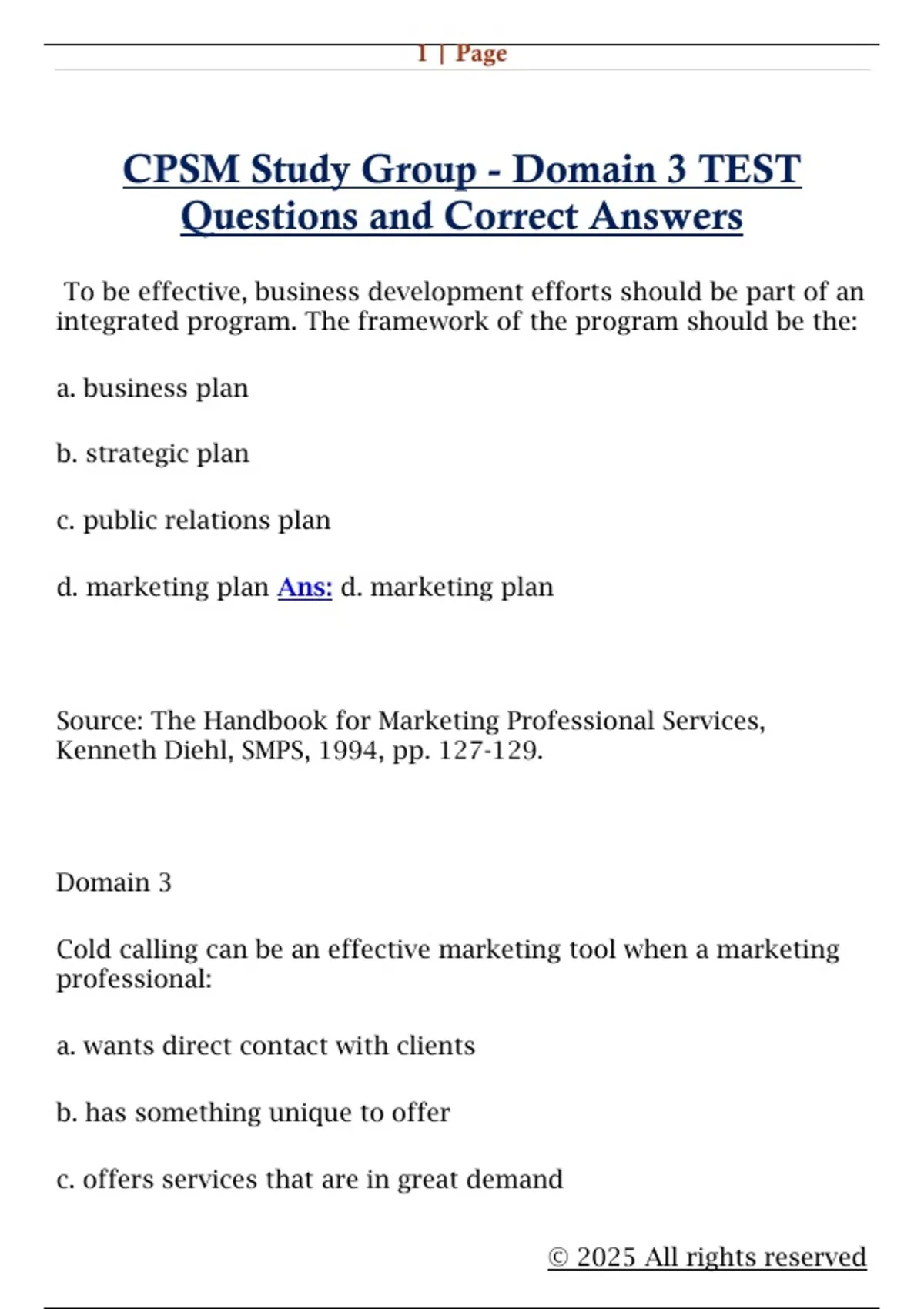 d. marketing plan Ans: d. marketing plan