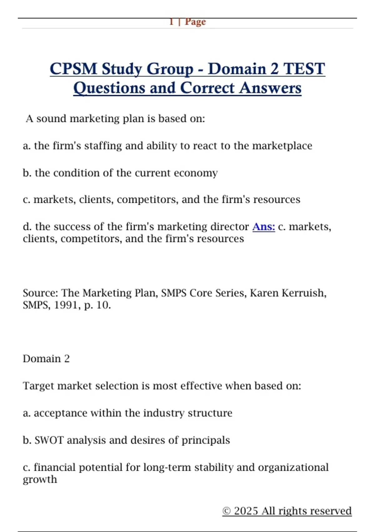 Source: The Marketing Plan, SMPS Core Series, Karen Kerruish,