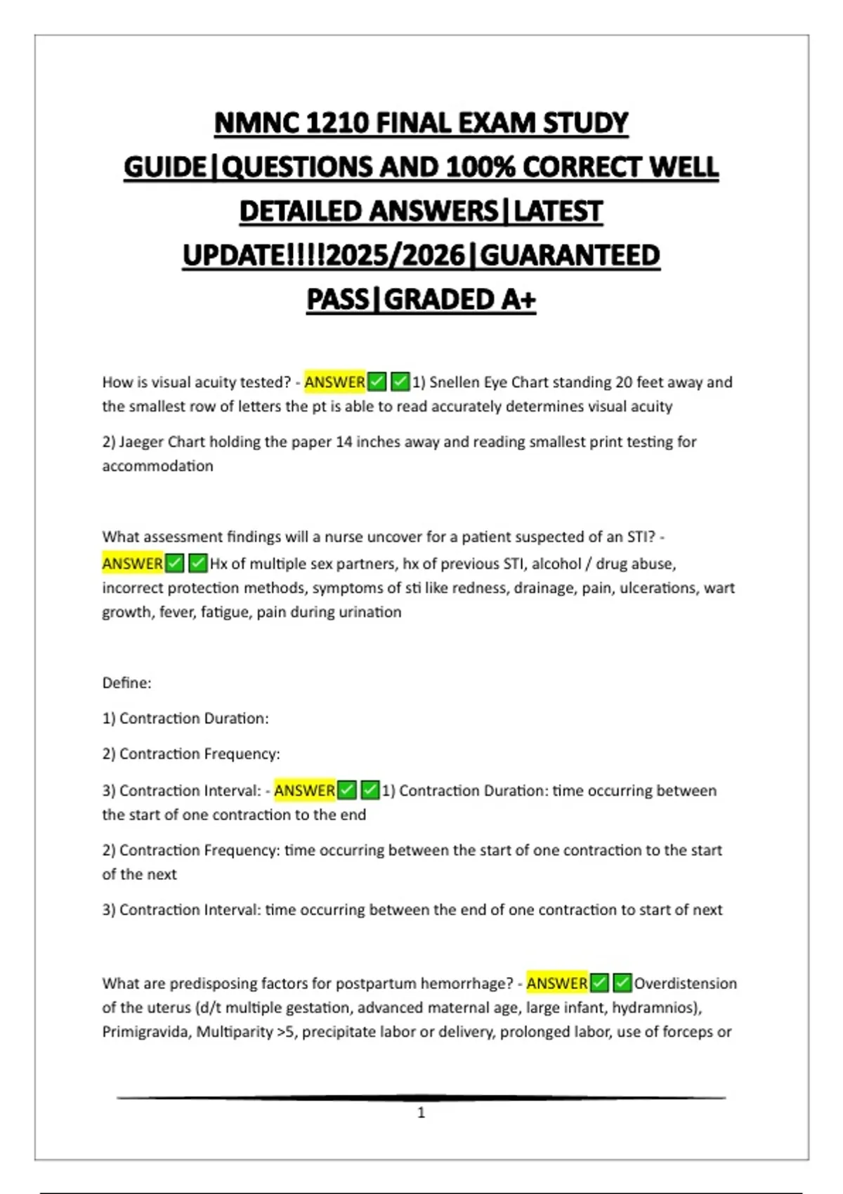 3) Contraction Interval: - ANSWER 1) Contraction Duration: time occurring between