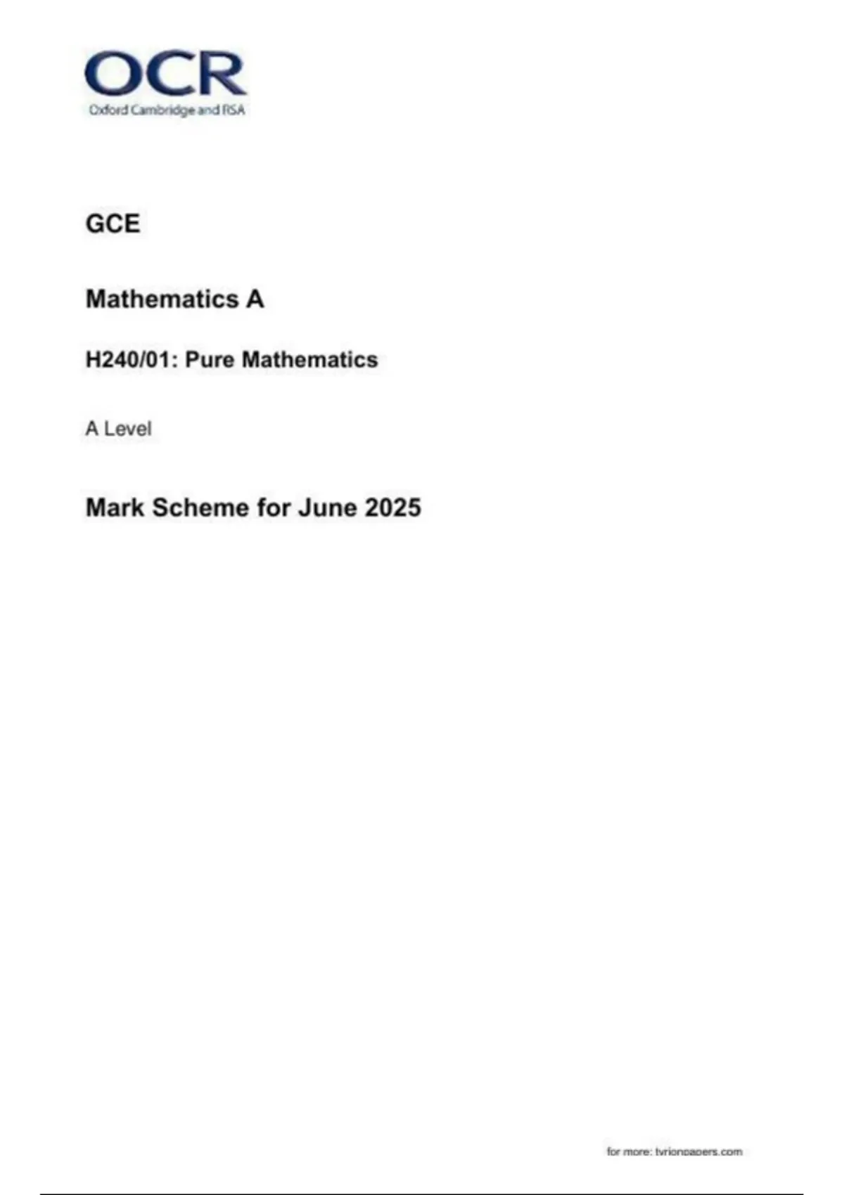 - OCR Mathematics A
