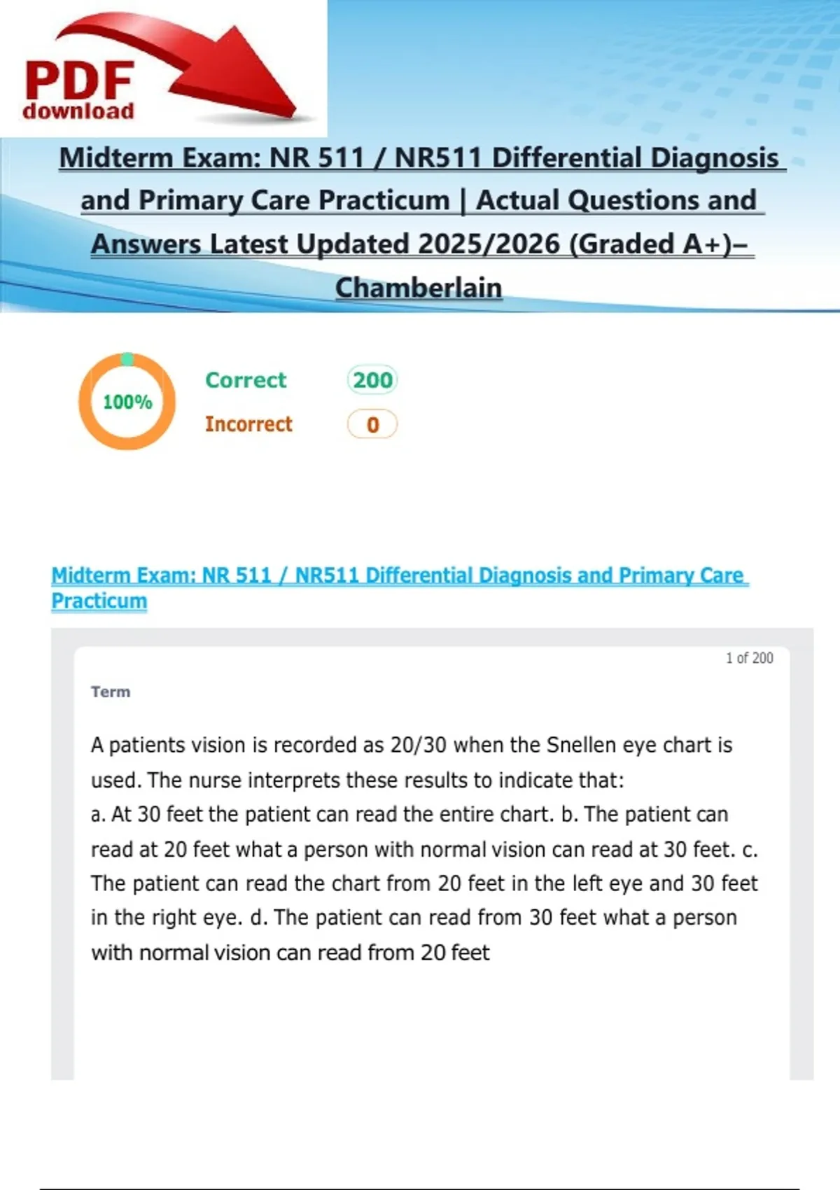 Midterm Exam: NR 511 / NR511 Differential Diagnosis and Primary Care
