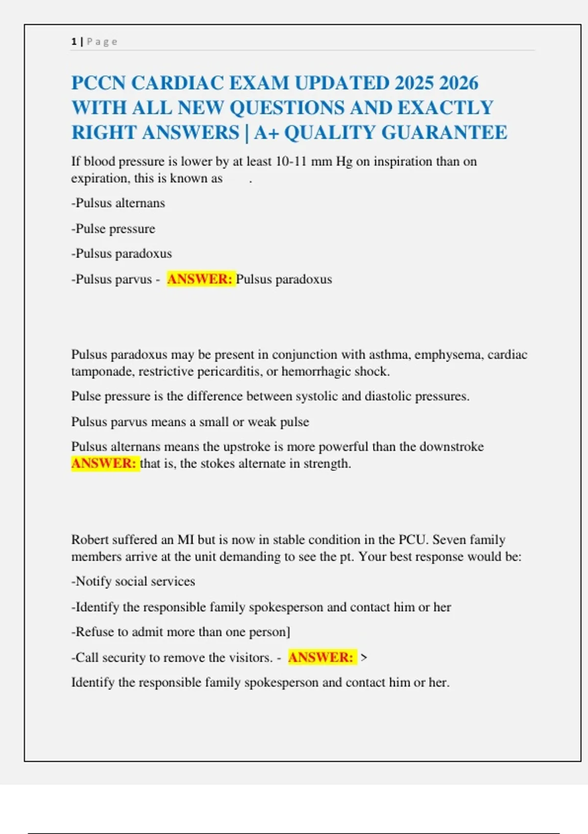 PCCN CARDIAC EXAM UPDATED 2025 2026