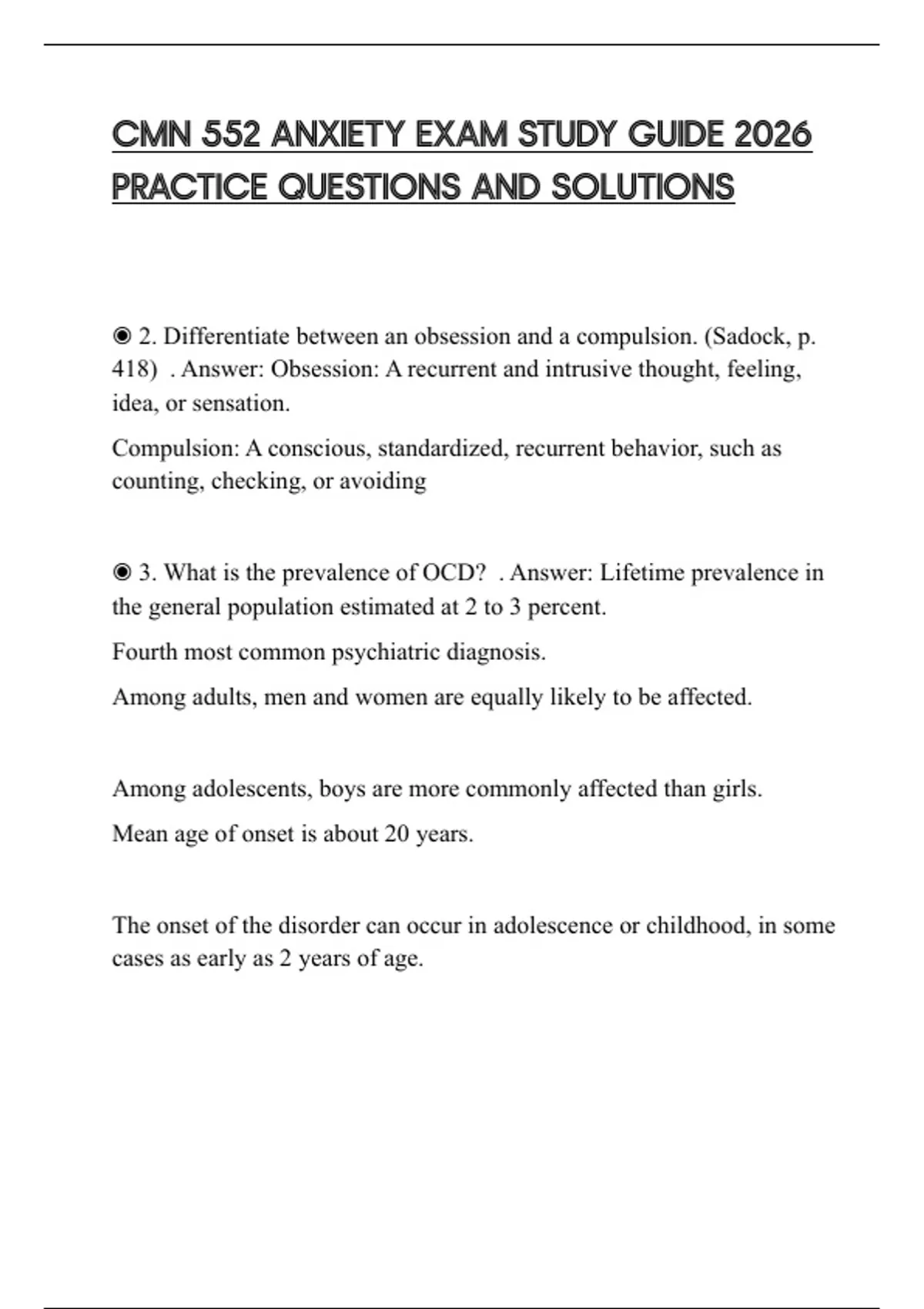 CMN 552 ANXIETY EXAM STUDY GUIDE 2026 PRACTICE QUESTIONS AND SOLUTIONS
