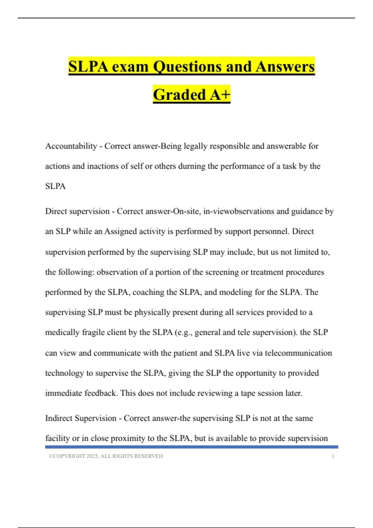 SLPA exam Questions and Answers Graded A+