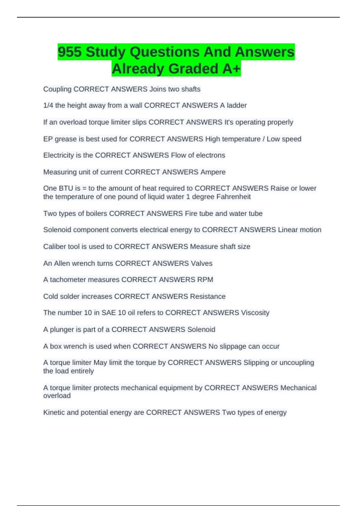Coupling CORRECT ANSWERS Joins two shafts