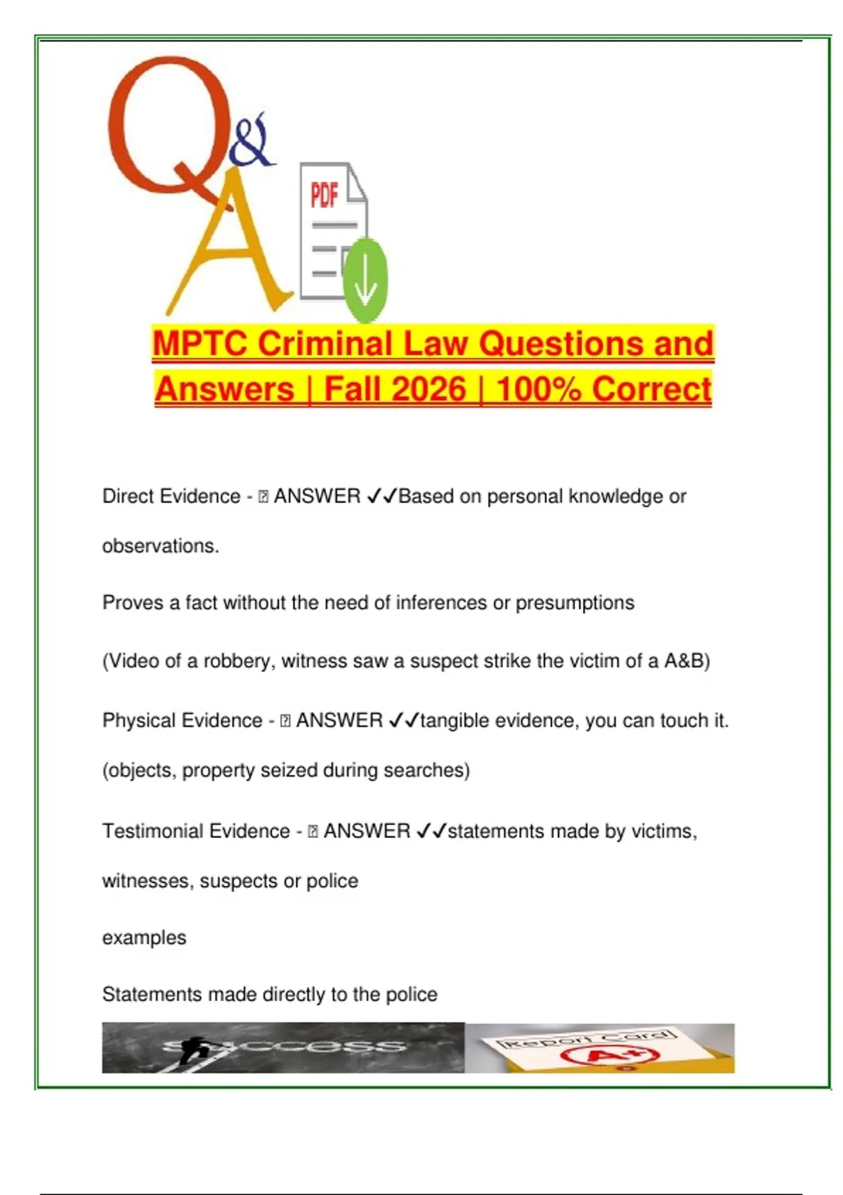 Testimonial Evidence - 🧠 ANSWER ✔✔statements made by victims,