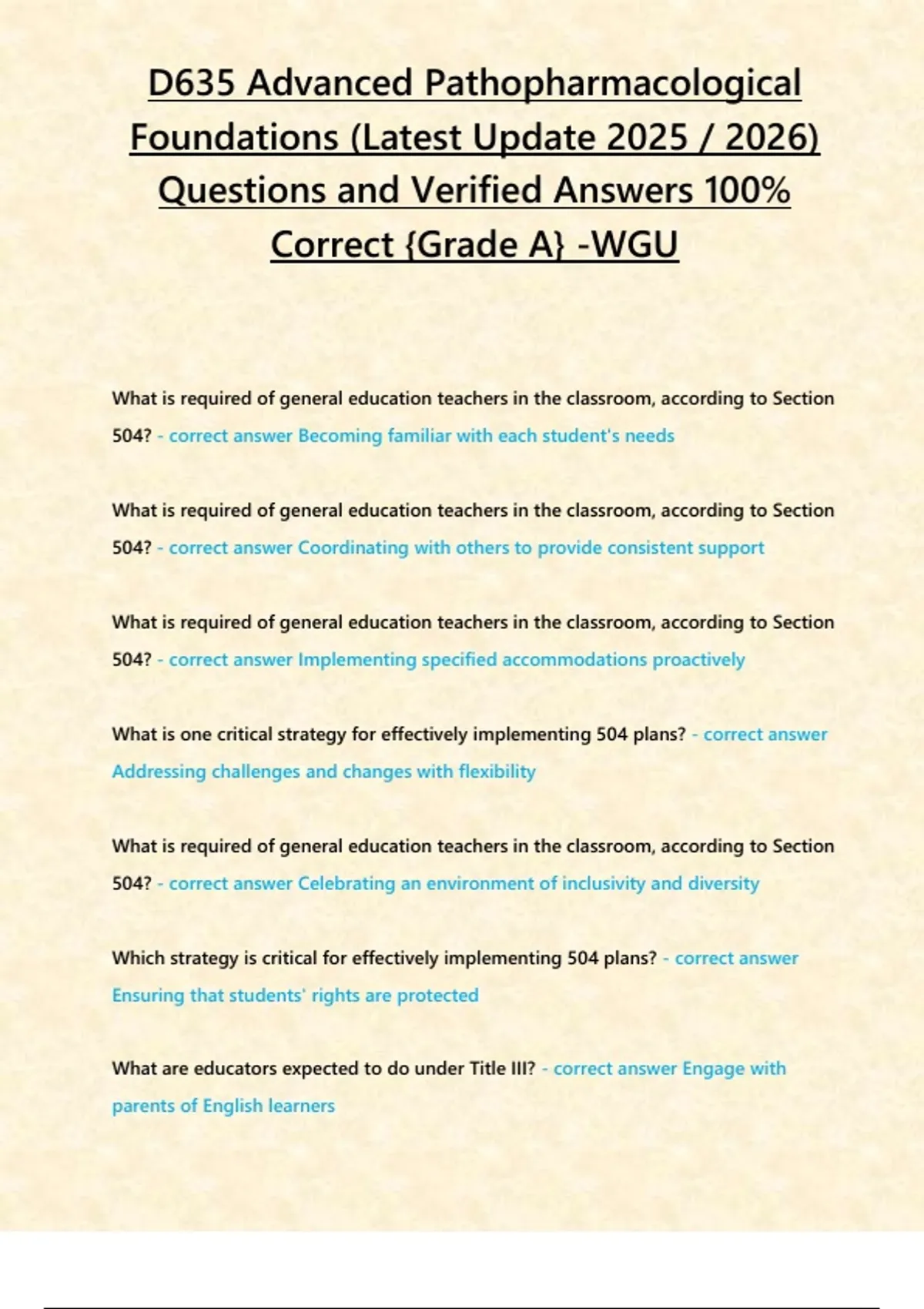 D635 Test Advanced Path Pharmacological Foundations (Latest Update 2025 / 2026) Questions and Verified Answers 100% Correct {Grade A} -WGU