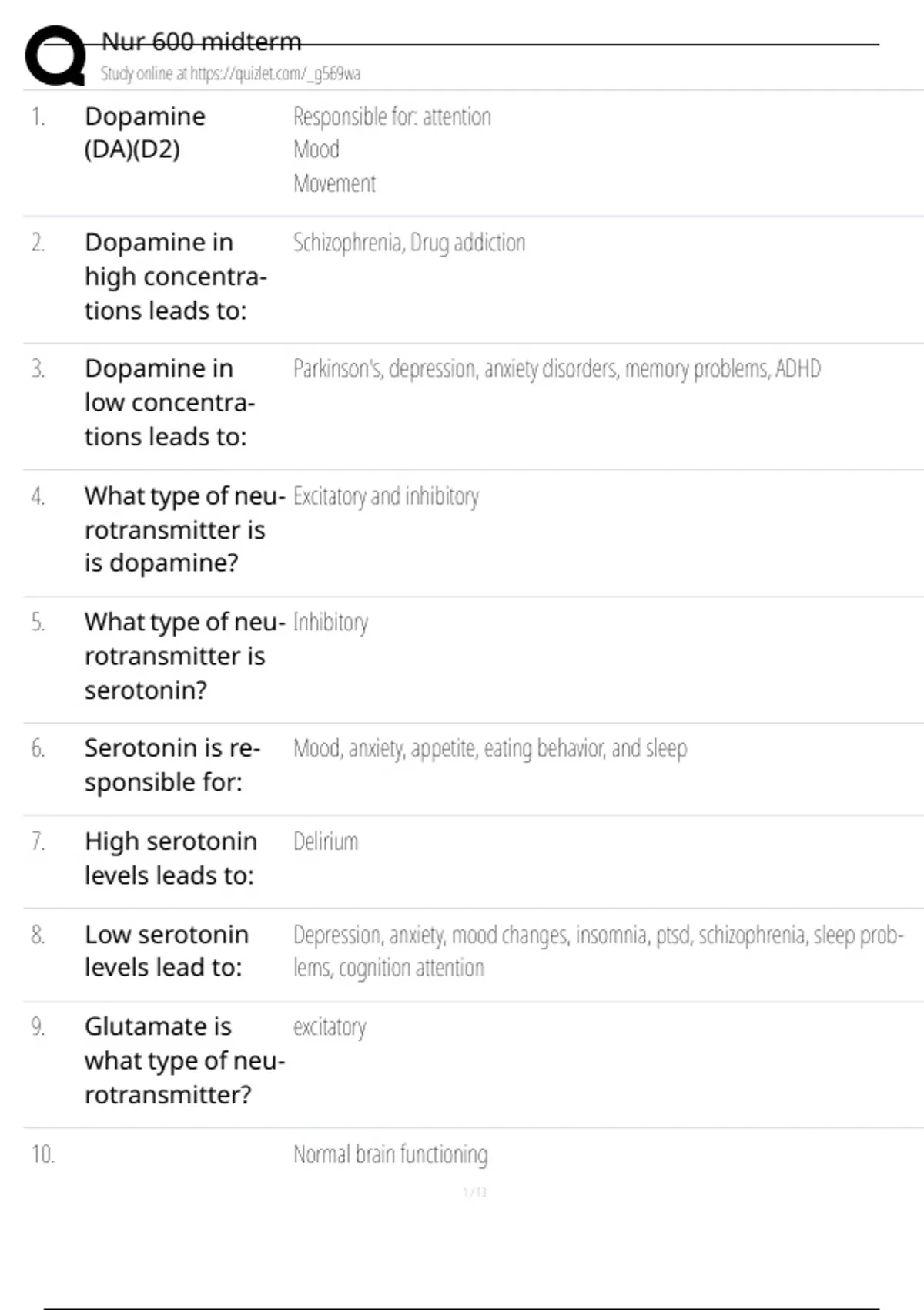 3. Dopamine in Parkinson's, depression, anxiety disorders, memory problems, ADHD