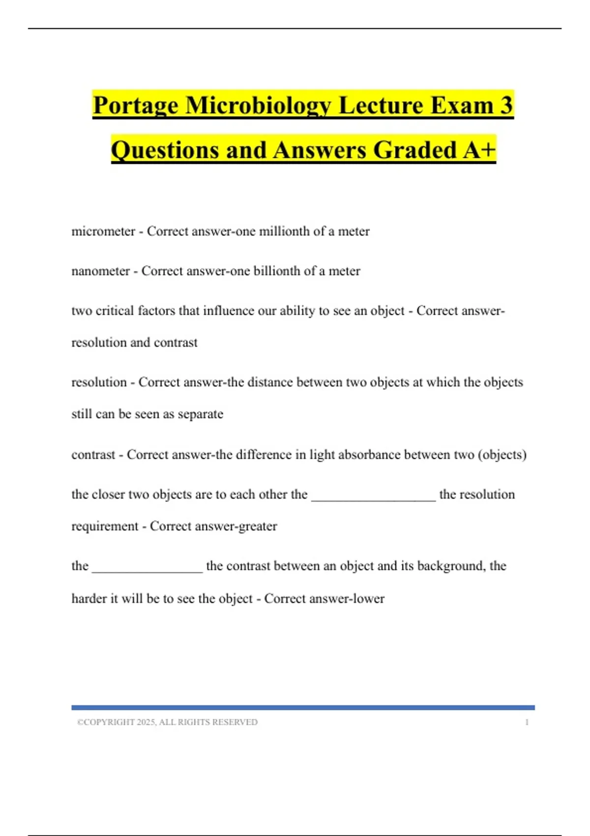 micrometer - Correct answer-one millionth of a meter