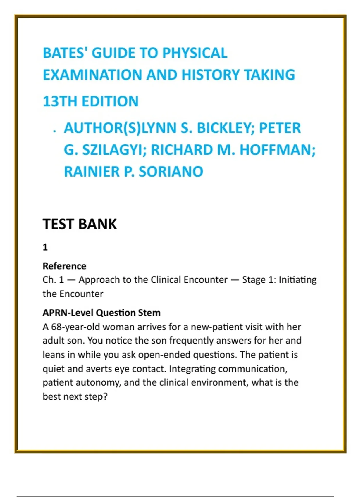 Bickley, L. S., Szilagyi, P. G., Hoffman, R. M., & Soriano, R. P.