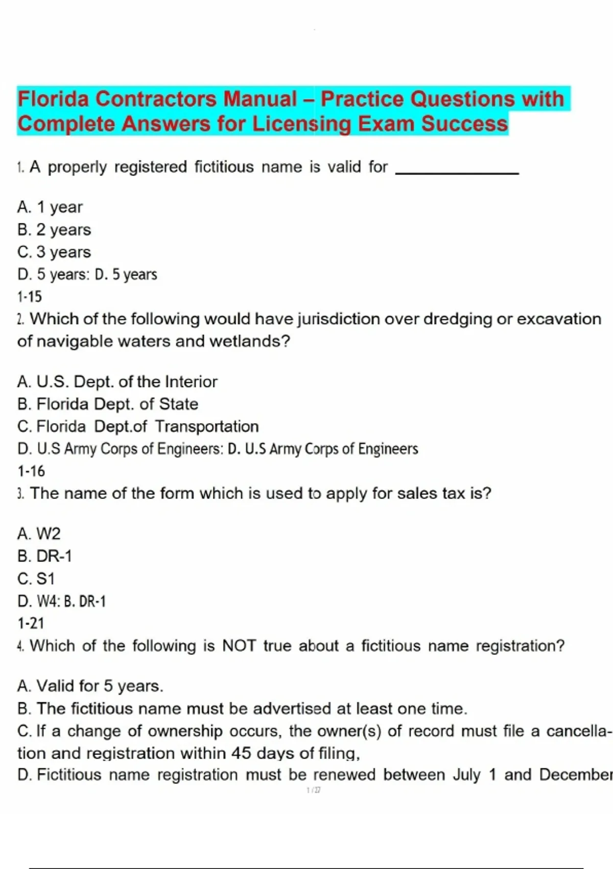 Florida Contractors Manual – Practice Questions with Complete Answers for Licensing Exam S Florida Contractors Manual – Practice Questions with Complete Answers for Licensing Exam S Florida Contractors Manual – Practice Questions with Complete Answers for Licensing Exam S Florida Contractors Manual – Practice Questions with Complete Answers for Licensing Exam S
