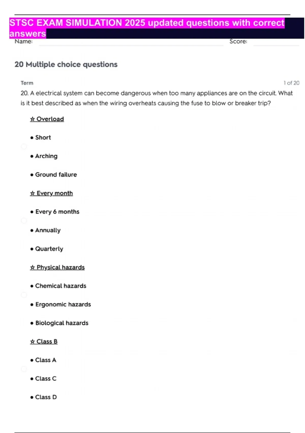 STSC EXAM SIMULATION 2025 updated questions with correct answers