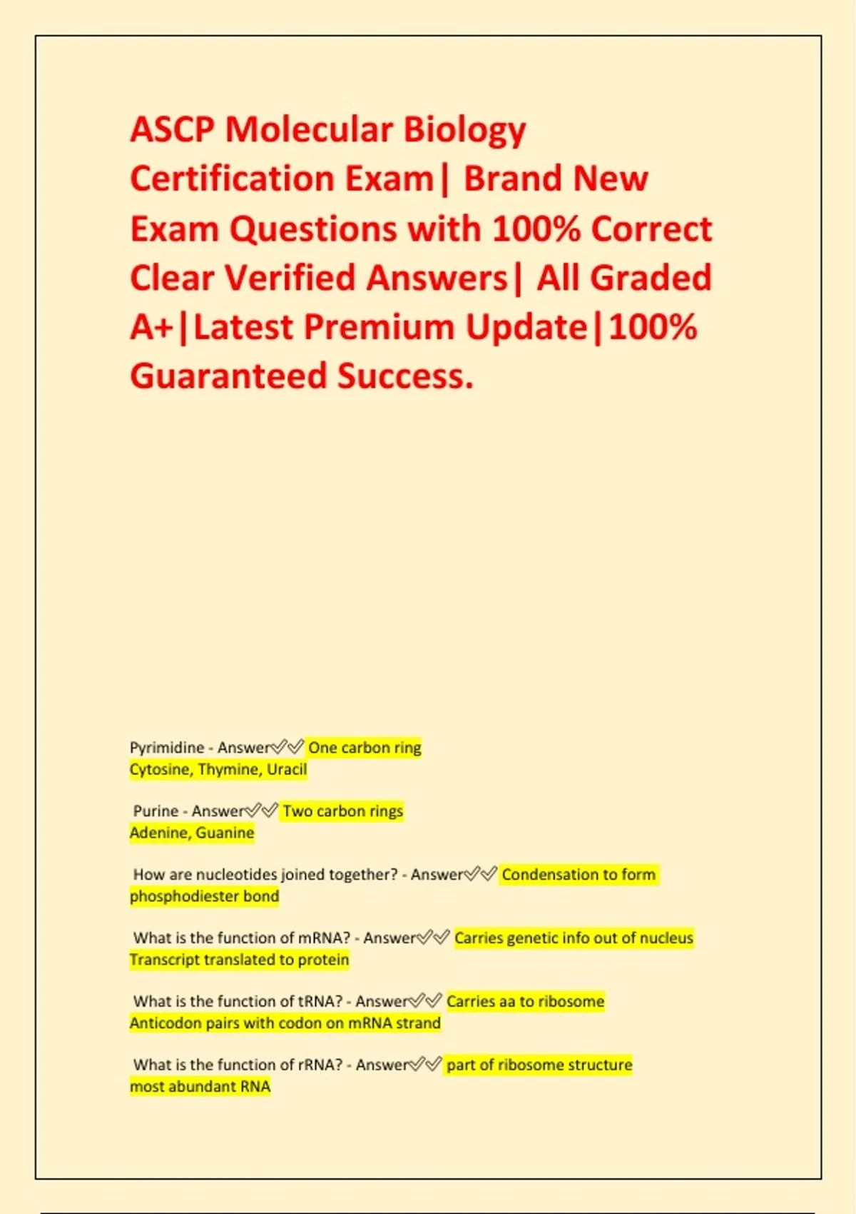 What is the function of mRNA? - Answer✅✅ Carries genetic info out of nucleus