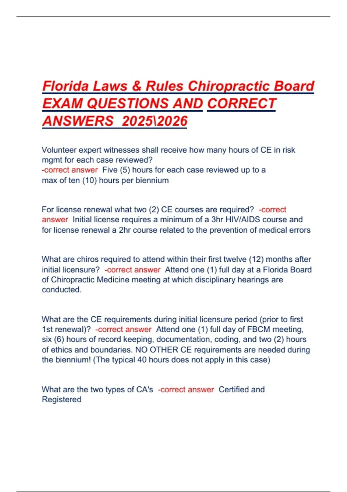 initial licensure? -correct answer Attend one (1) full day at a Florida Board