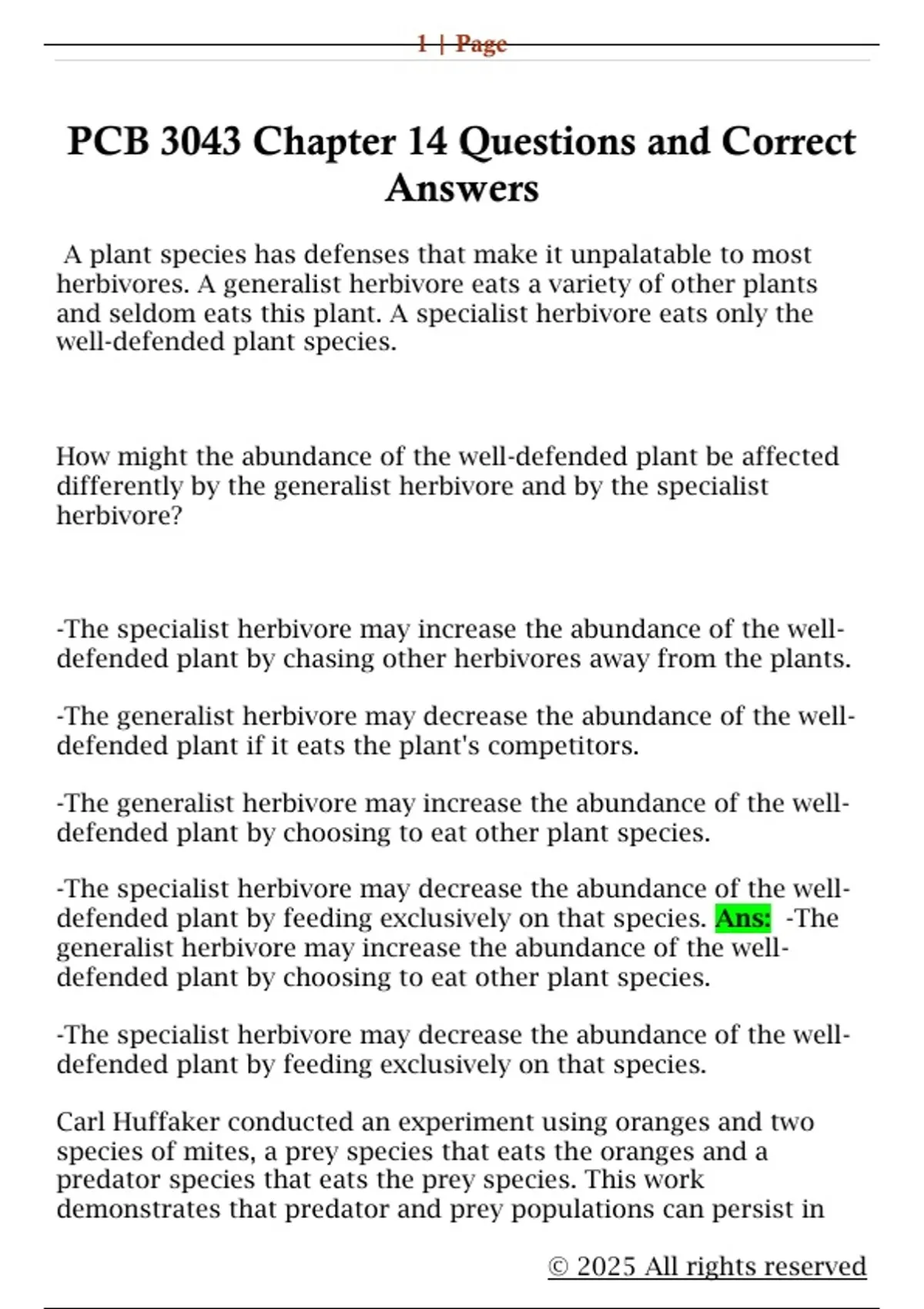 PCB 3043 Chapter 14 Questions and Correct