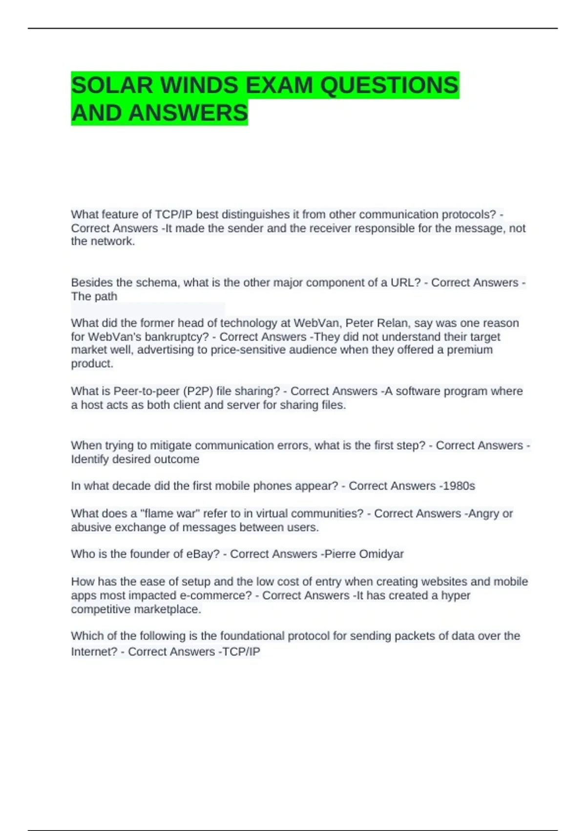 SOLAR WINDS EXAM QUESTIONS