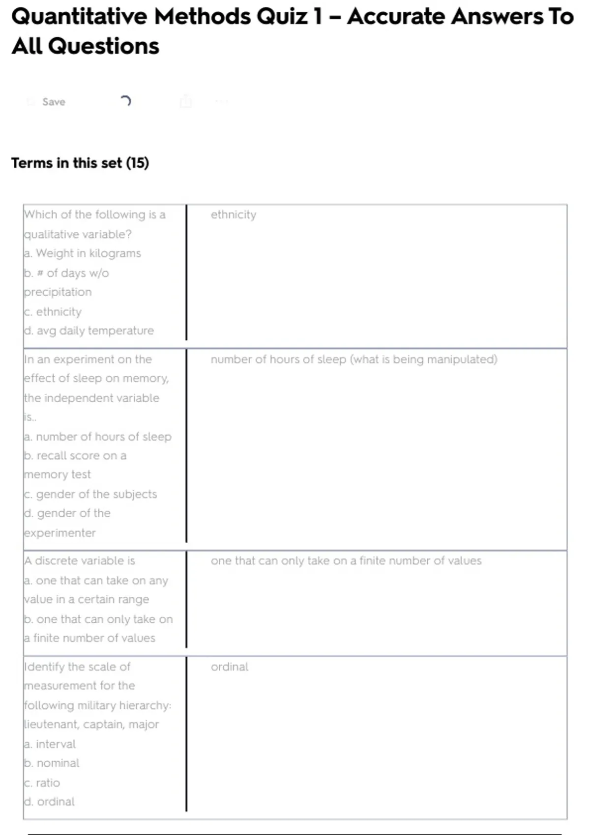 Quantitative Methods Quiz 1 – Accurate Answers To