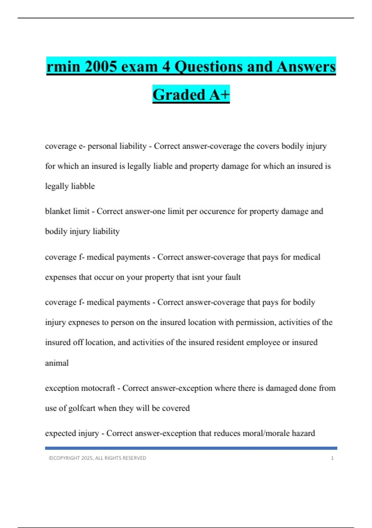 coverage e- personal liability - Correct answer-coverage the covers bodily injury