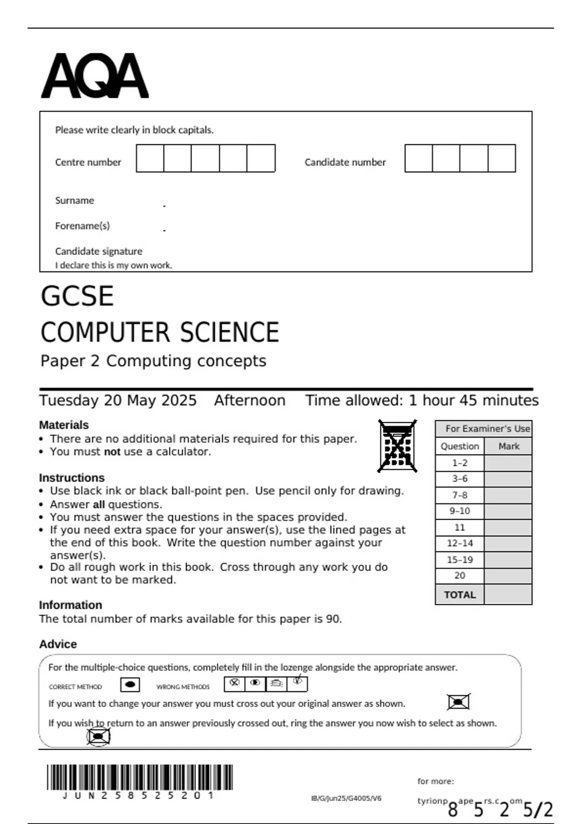 Tuesday 20 May 2025 Afternoon Time allowed: 1 hour 45 minutes