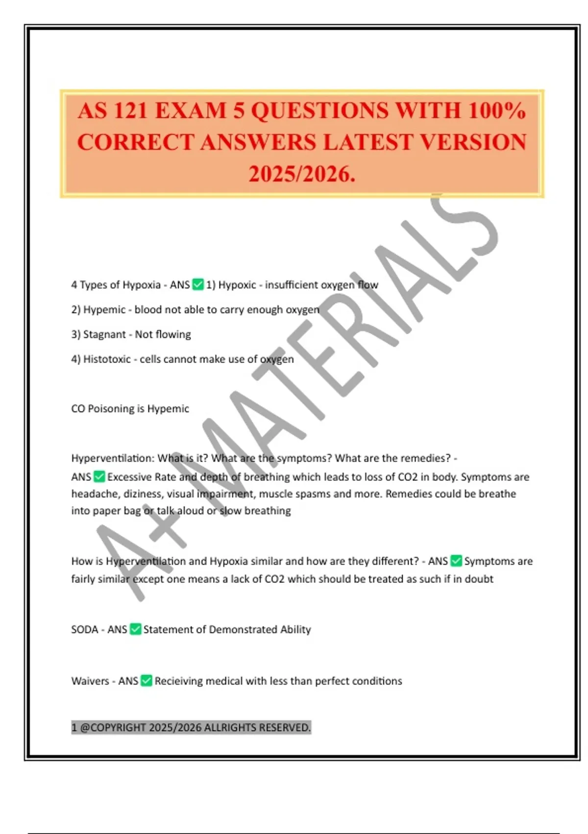 AS 121 EXAM 5 QUESTIONS WITH 100% CORRECT ANSWERS LATEST VERSION 2025/2026.