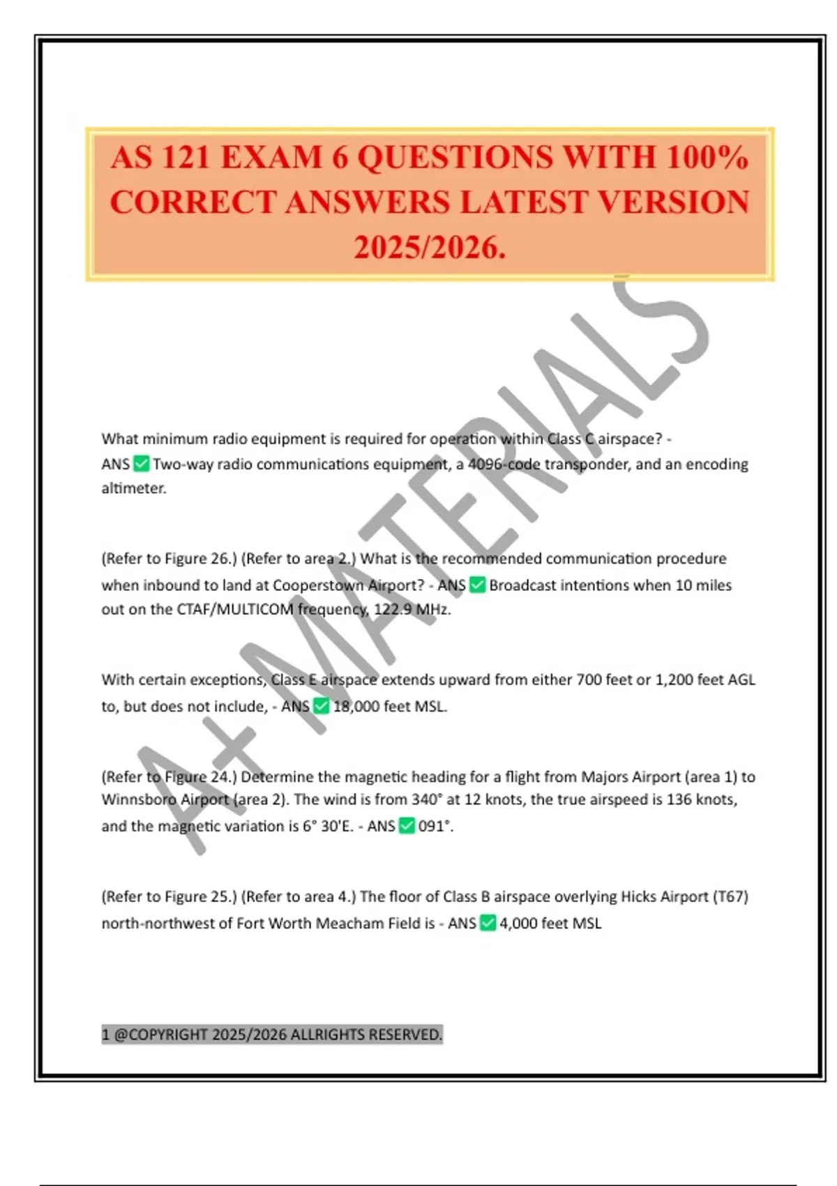 AS 121 EXAM 6 QUESTIONS WITH 100% CORRECT ANSWERS LATEST VERSION 2025/2026.