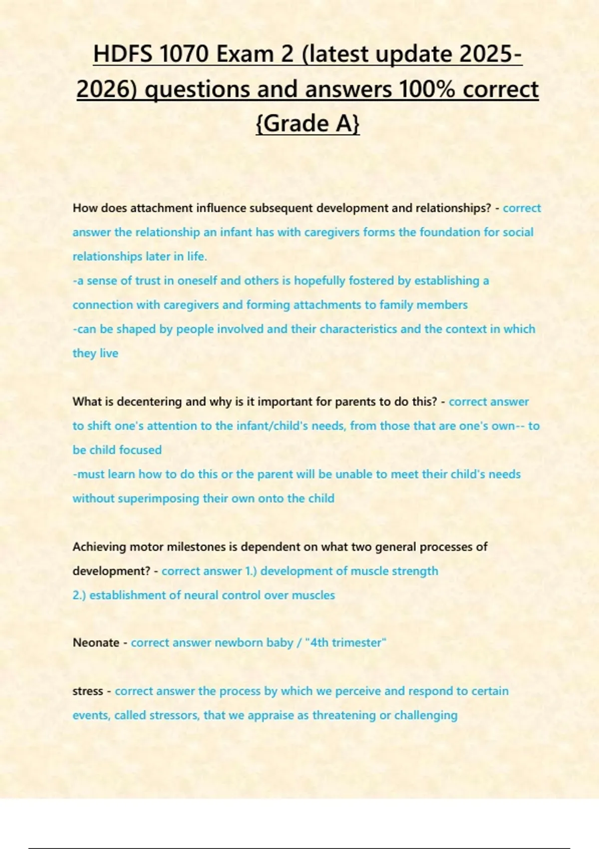 HDFS 1070 Exam 2 (latest update ) questions and answers 100- correct -Grade A