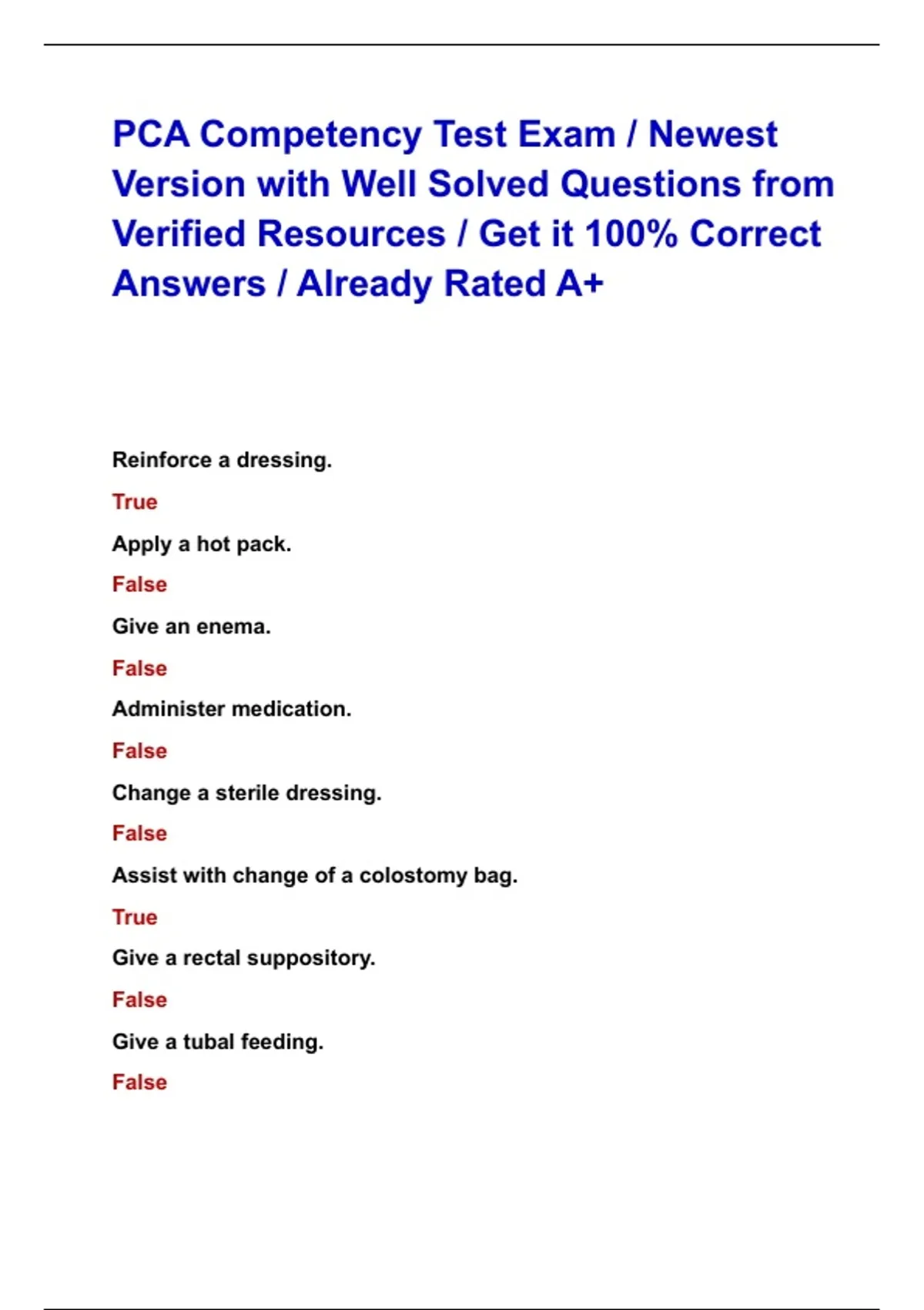 PCA Competency Test Exam / Newest