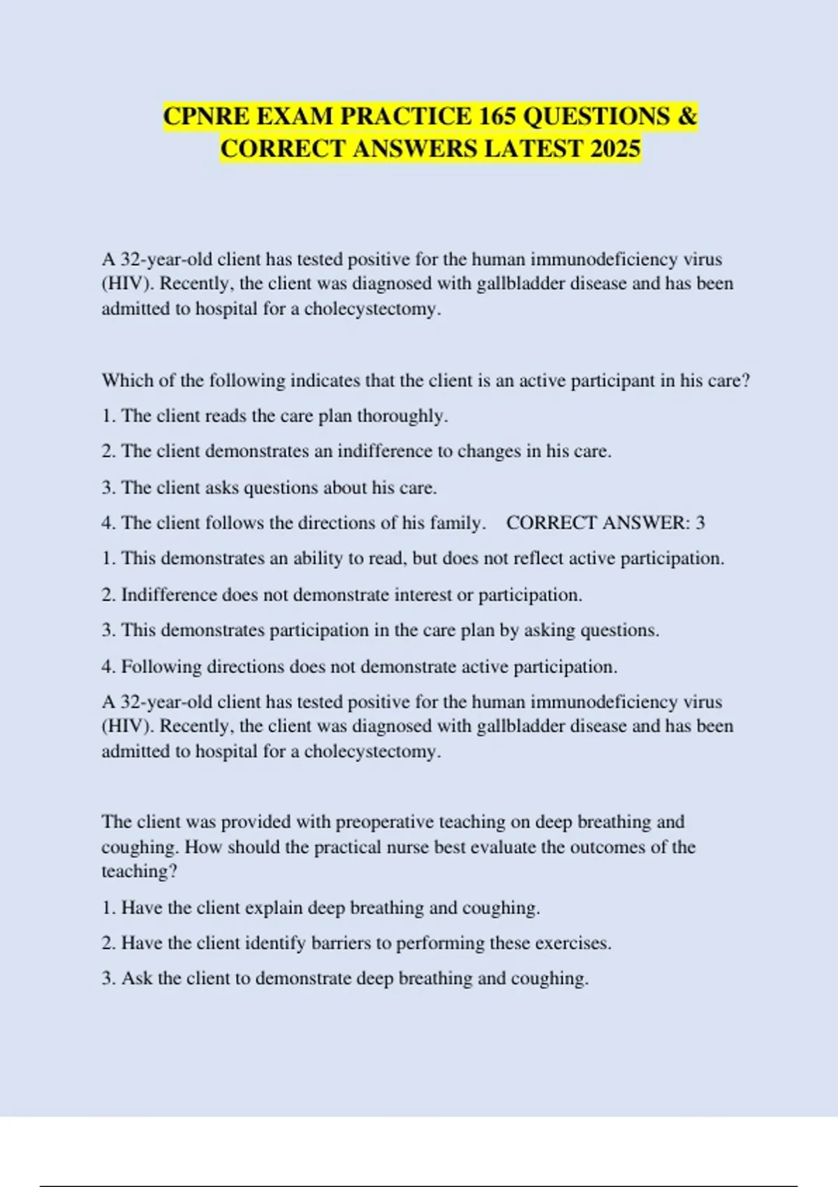 CPNRE EXAM PRACTICE 165 QUESTIONS & CORRECT ANSWERS LATEST 2025