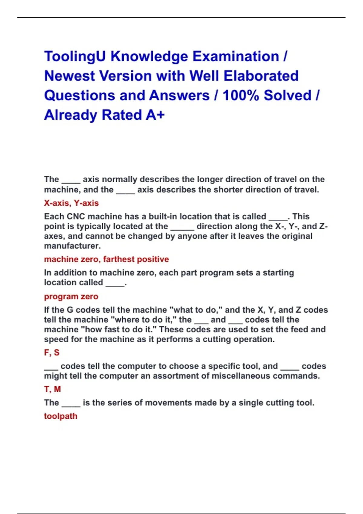 ToolingU Knowledge Examination / Newest Version with Well Elaborated Questions and Answers / 100% Solved / Already Rated A+