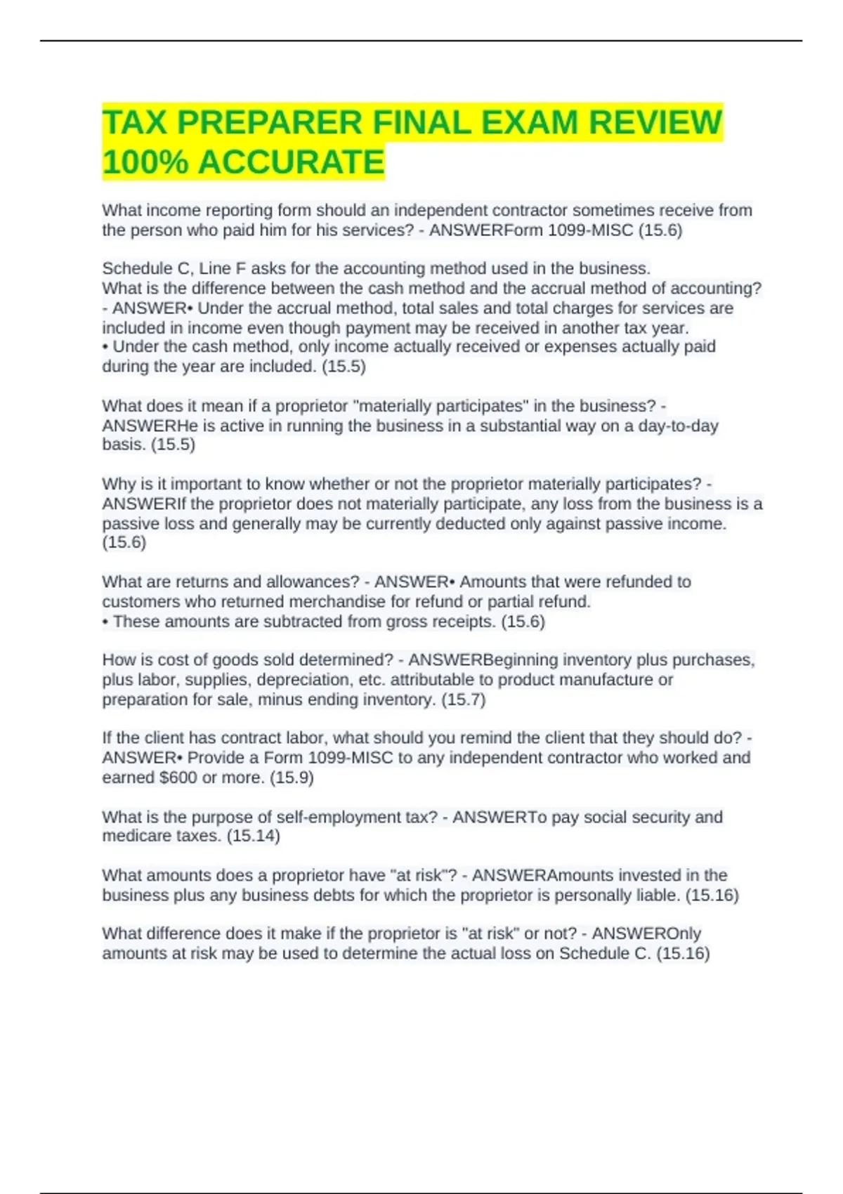 preparation for sale, minus ending inventory. (15.7)