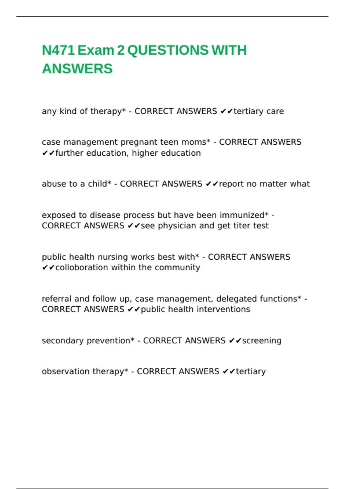 N471 Exam 2 QUESTIONS WITH ANSWERS