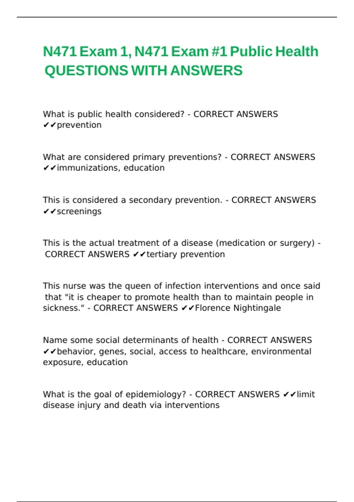 sickness." - CORRECT ANSWERS ✔✔Florence Nightingale