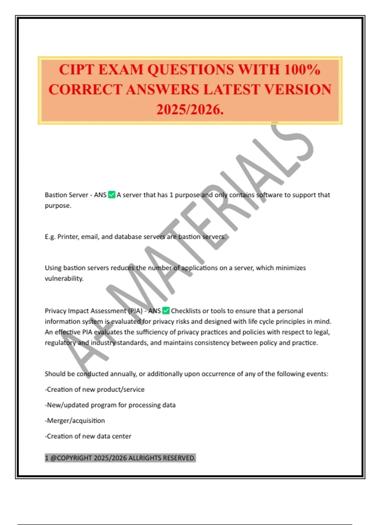 CIPT EXAM QUESTIONS WITH 100% CORRECT ANSWERS LATEST VERSION 2025/2026.